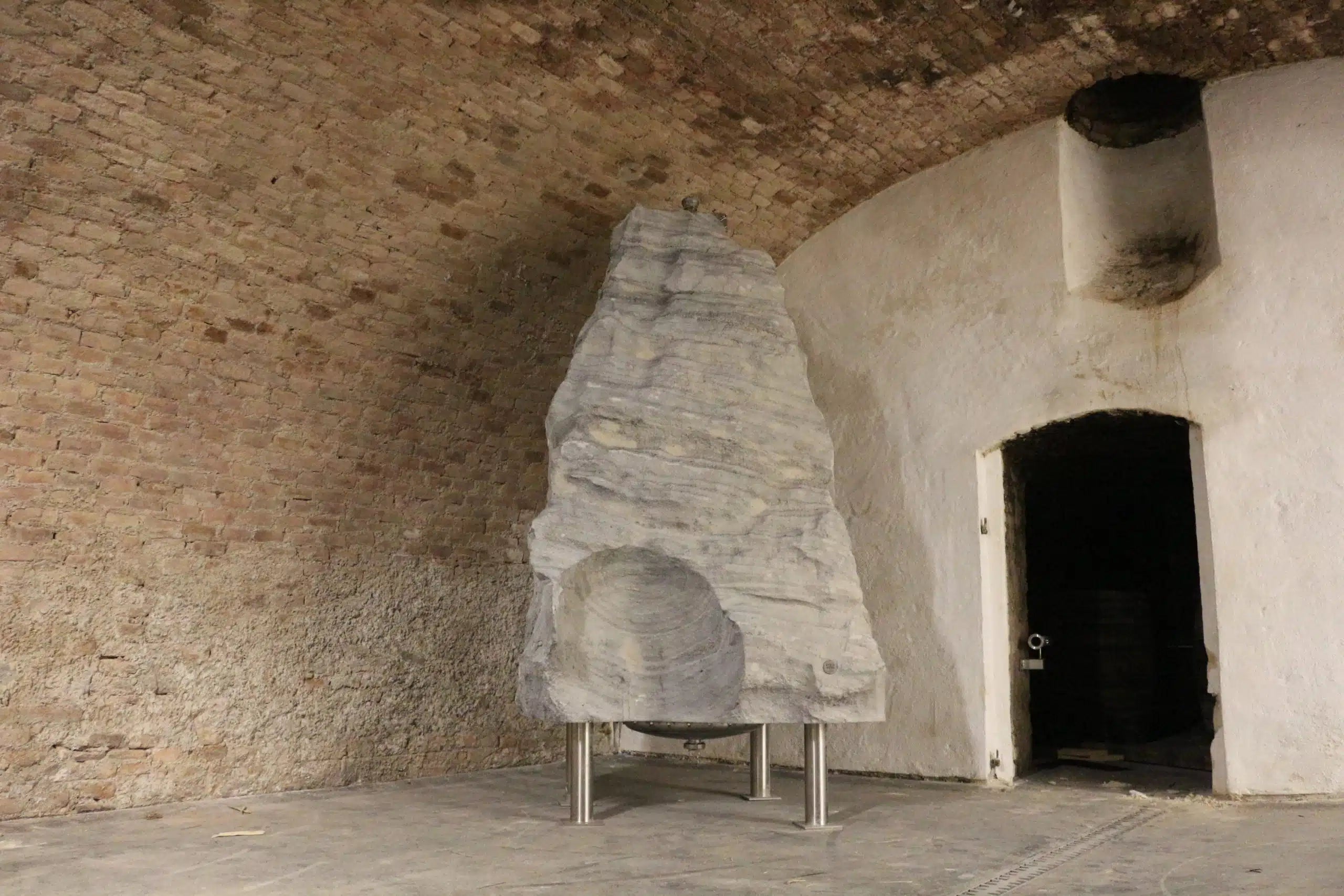 Carved in the Wachau itself, the marble rock has a rare "glacial sheen" created over millions of years. The finished container weighs 4.5 tons, is 270 cm high and has a volume of approximately 700 liters. Its polished interior remains untreated, which ensures direct contact between the marble and the wine, enhancing the wine's purity and its unique mineral expression.