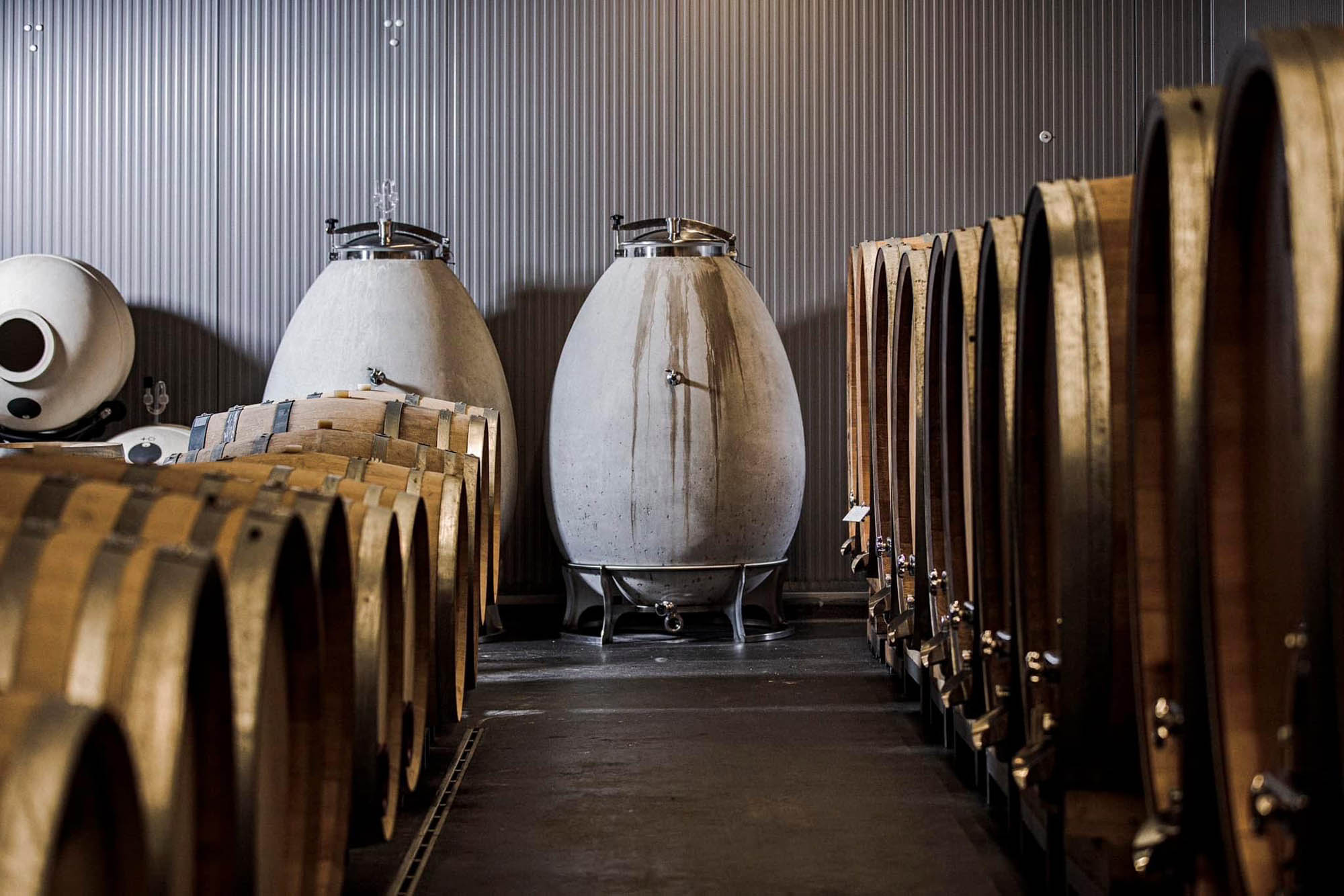 Modern clay vessels, often inspired by ancient amphorae, are used in winemaking for their porous nature, which allows a gentle exchange of oxygen during fermentation and maturation. Unlike oak wood, clay does not add flavors and allows for a pure expression of the grapes and terroir.